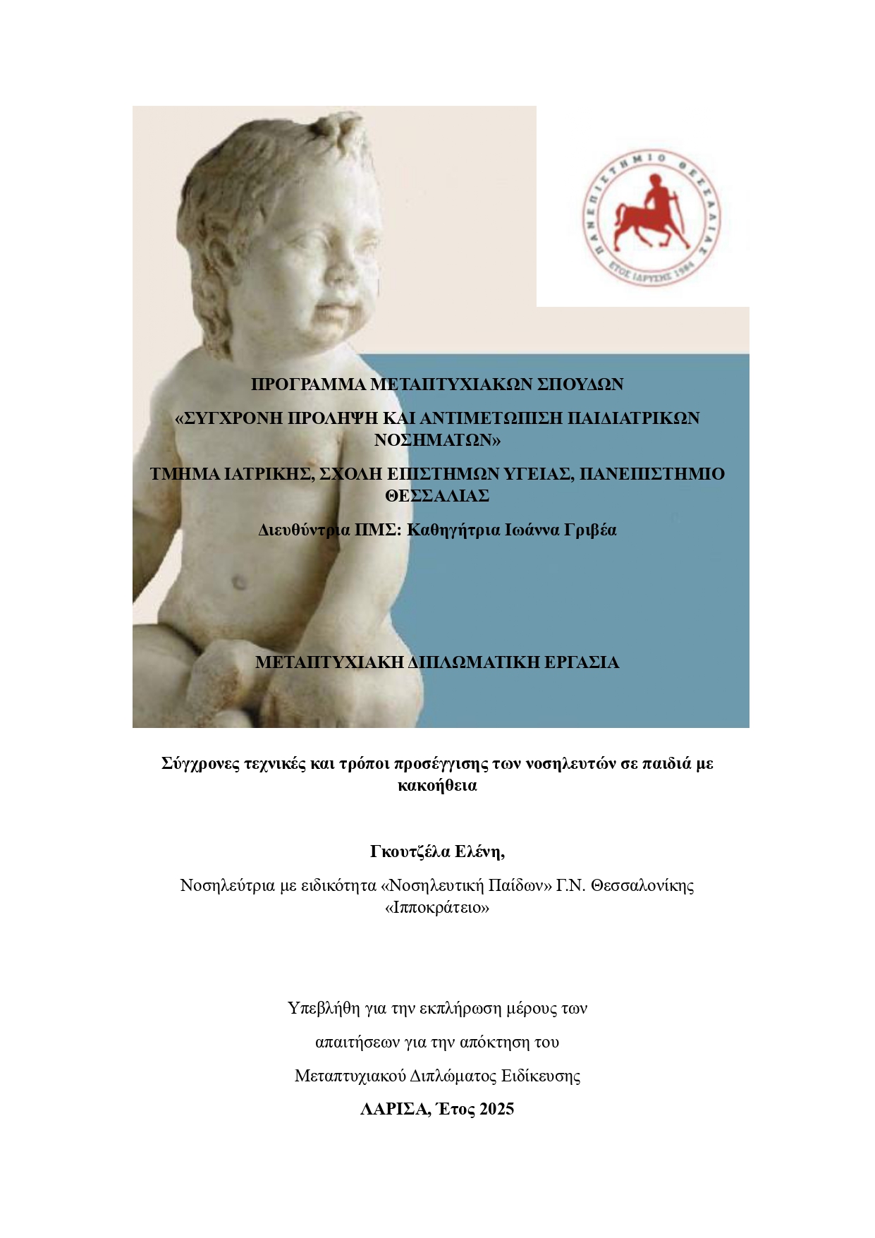 ΣΥΓΧΡΟΝΕΣ ΤΕΧΝΙΚΕΣ ΚΑΙ ΤΡΟΠΟΙ ΠΡΟΣΕΓΓΙΣΗΣ ΤΩΝ ΝΟΣΗΛΕΥΤΩΝ ΣΕ ΠΑΙΔΙΑ ΜΕ ΚΑΚΟΗΘΕΙΑ