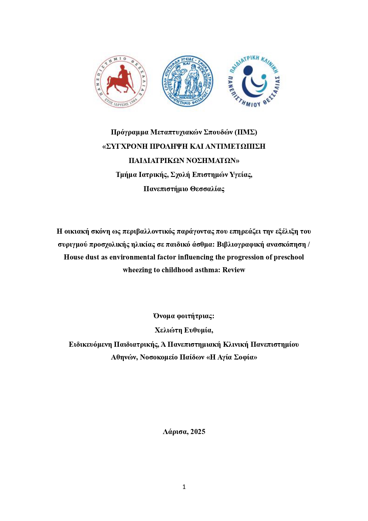 Η ΟΙΚΙΑΚΗ ΣΚΟΝΗ ΩΣ ΠΕΡΙΒΑΛΛΟΝΤΙΚΟΣ ΠΑΡΑΓΟΝΤΑΣ ΠΟΥ ΕΠΗΡΕΑΖΕΙ ΤΗΝ ΕΞΕΛΙΞΗ ΤΟΥ ΣΥΡΙΓΜΟΥ ΠΡΟΣΧΟΛΙΚΗΣ ΗΛΙΚΙΑΣ ΣΕ ΠΑΙΔΙΚΟ ΑΣΘΜΑ