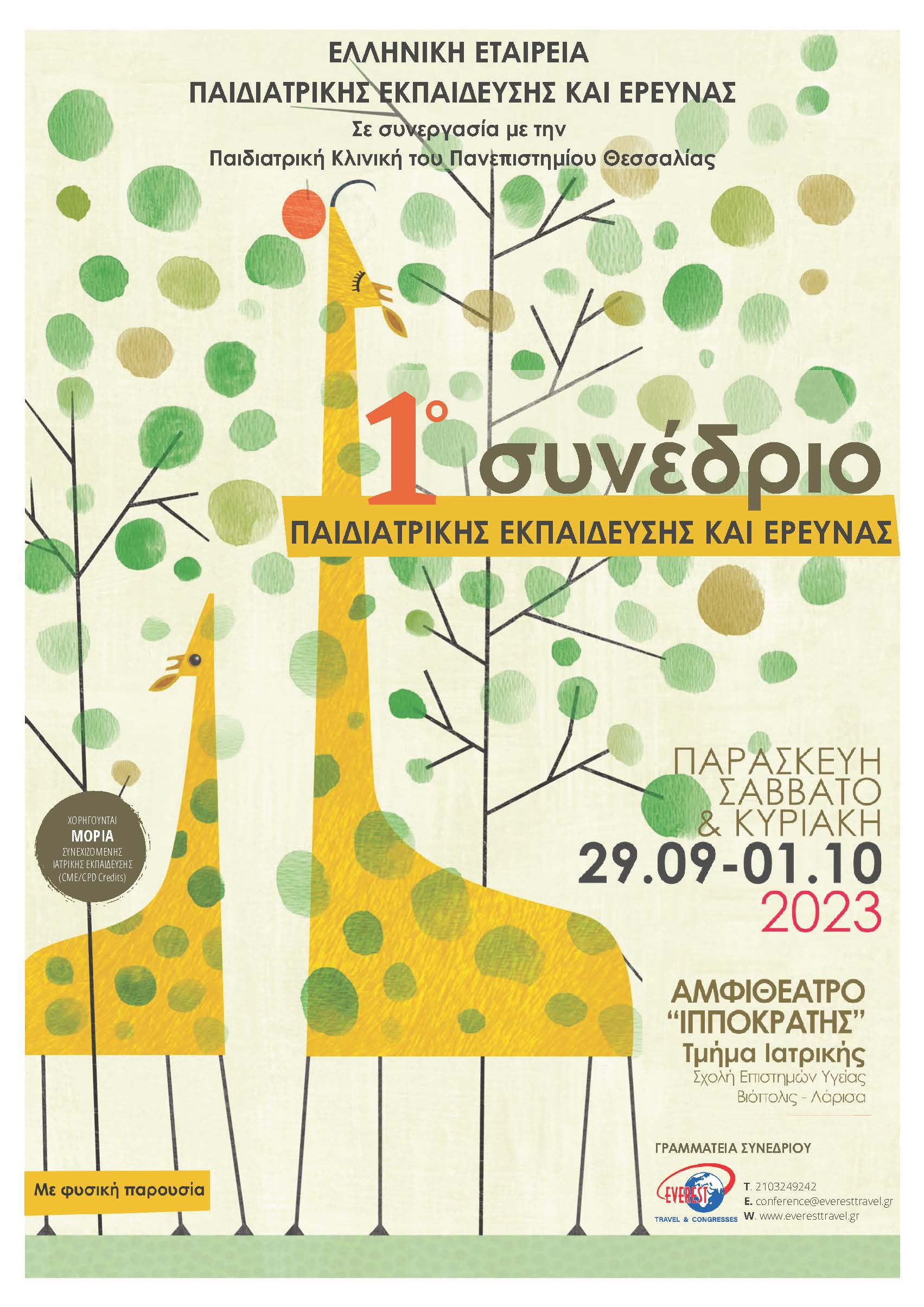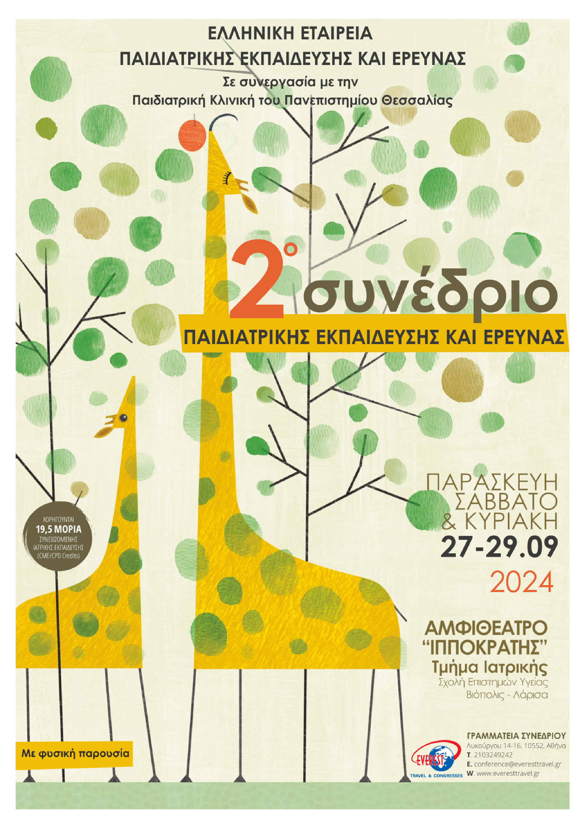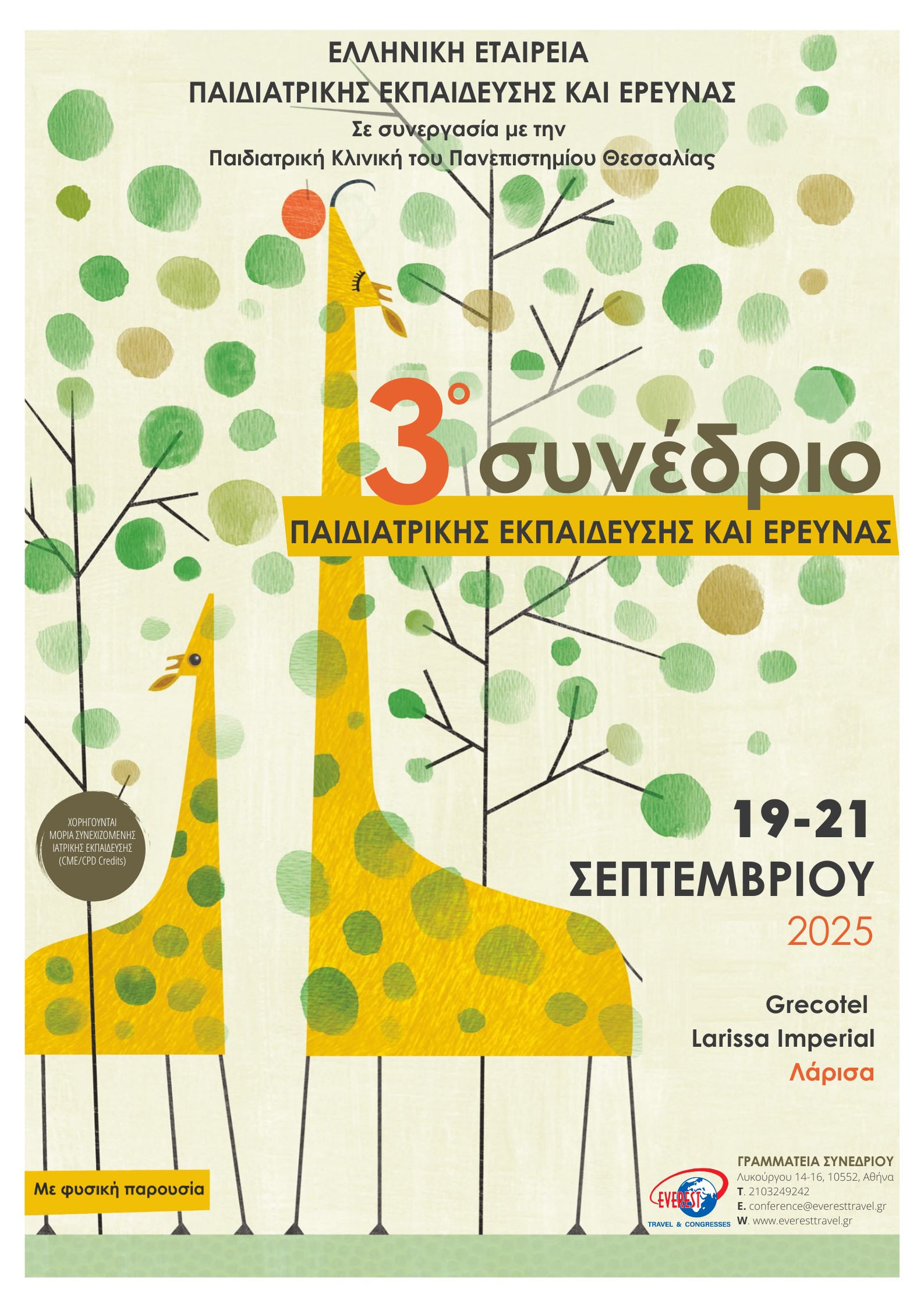 Θα θέλαμε να σας ενημερώσουμε ότι στις 19–21 Σεπτεμβρίου 2025 θα πραγματοποιηθεί το 3ο Συνέδριο Παιδιατρικής Εκπαίδευσης και Έρευνας, που διοργανώνεται από την Εταιρεία Παιδιατρικής Εκπαίδευσης και Έρευνας Κεντρικής Ελλάδας (ΕΕΠΕΚΕ) σε συνεργασία με την Παιδιατρική Κλινική του Πανεπιστημίου Θεσσαλίας, στο ξενοδοχείο Grecotel Larissa Imperial, στη Λάρισα.